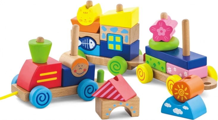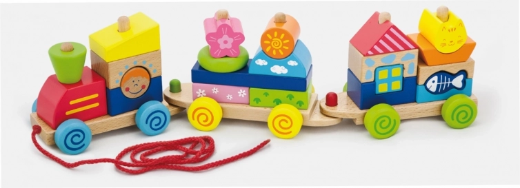 - Jouet 2-en-1 : train à tirer et puzzle empilable