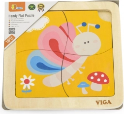 Ce joli puzzle en bois avec un papillon coloré est un excellent choix pour une première découverte des puzzles. Quatre pièces robustes tiennent bien dans les petites mains et se placent dans un plateau en bois solide avec modèle. Une pièce comporte un trou pratique pour un retrait facile, afin que les enfants apprennent rapidement à manipuler et à recomposer les pièces.