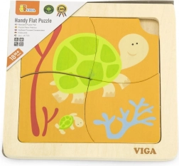 Le puzzle en bois avec petite tortue est conçu pour les enfants dès 18 mois. Il se compose de quatre grandes pièces qui s'insèrent facilement dans le cadre en bois ou peuvent être assemblées séparément. Chaque pièce est richement colorée et offre une manière unique de développer l'imagination spatiale des enfants et la coordination œil-main.