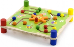 Le jeu Trop et Suivez est conçu pour développer la motricité fine et la coordination des mains et des yeux. Les enfants sont motivés à placer les chevilles dans les bonnes positions sur la planche, selon les six motifs de cartes fournis.