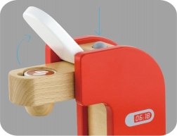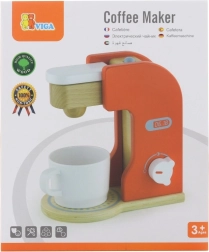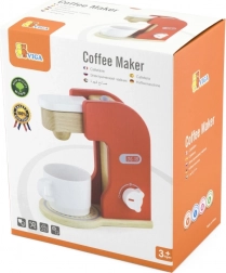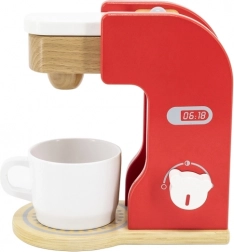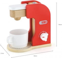 Cafetière rouge avec des accents en bois naturel qui imitent un véritable appareil et offrent une expérience de jeu ludique.