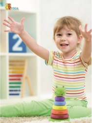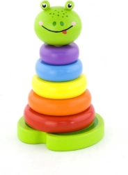 La pyramide empilable en bois Grenouille est un jouet idéal pour les enfants dès 2 ans. Elle est conçue pour aider à développer la coordination œil-main et renforcer la capacité de différenciation des couleurs. Le jouet se compose d’anneaux multicolores à empiler sur une base en bois avec une adorable grenouille au sommet.