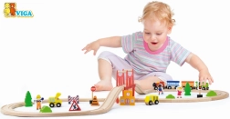 Le circuit de train en bois propose un set complet de 39 pièces, offrant d’infinies possibilités d’assemblage et stimulant l’imagination des enfants.