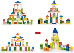 L'ensemble comprend des blocs de différentes tailles, de 2,5 cm à 7,5 cm, permettant aux enfants de créer différentes constructions telles que des maisons, des ponts et d'autres éléments urbains. Grâce au matériau de bois durable, les blocs conviennent pour le jeu sûr et à long terme.