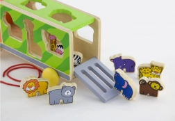 Adorable camion en bois à tirer avec animaux et boîte à formes qui ravira les petits explorateurs dès 18 mois. Grâce à 8 animaux en bois et aux ouvertures de tri, les enfants exercent la reconnaissance des formes, la motricité fine et la coordination œil–main. Ses dimensions compactes 27 × 12,5 × 12 cm et sa ficelle de traction en font un jouet idéal à la maison comme en voyage.