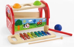 Ingénieux jouet en bois 2 en 1 qui combine banc à marteler et xylophone, il ravira les petits musiciens dès 24 mois. Les enfants frappent les billes colorées avec le marteau et jouent ensuite leurs premières mélodies sur le xylophone amovible – le jouet développe la motricité fine, la coordination œil-main et le sens du rythme. Fabrication en bois robuste, couleurs gaies et dimensions compactes env. 16 × 27,2 × 16 cm.