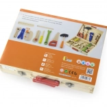 Légère mais robuste, la valisette avec poignée et fermoirs garde toutes les pièces bien rangées. Les enfants peuvent l’emporter partout et apprennent à remettre les outils à leur place.