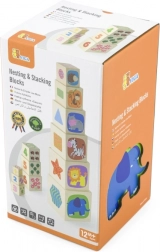 Construisez une tour colorée et découvrez le monde des formes, des couleurs et des chiffres. Ces cubes empilables en bois de VIGA développent la motricité fine, la coordination œil-main et la pensée logique. Chaque cube est imprimé avec des animaux, des formes géométriques et des chiffres, pour un apprentissage ludique. Idéal pour les premières constructions, le tri et l’emboîtement.