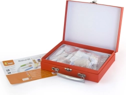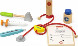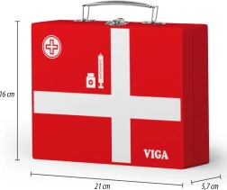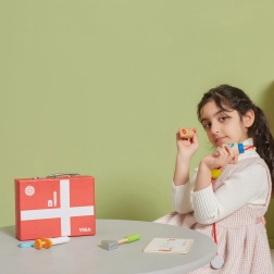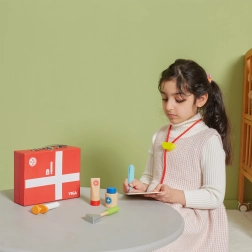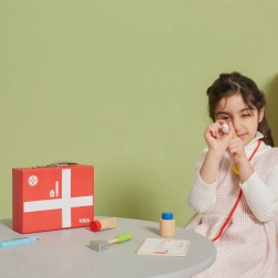 Cette belle mallette médicale en bois robuste ravira tous les apprentis médecins. Les enfants peuvent écouter le cœur avec le stéthoscope, « mesurer » la température avec le thermomètre, faire une piqûre ou remplir la fiche du patient pour leurs peluches et poupées. Le jeu du docteur est un jeu de rôle amusant qui développe les compétences sociales, la sensibilité et l’empathie.