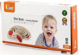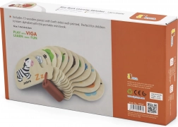 L’ensemble de cartes en bois reliées par une corde rouge comprend différentes images, des lettres et les noms des éléments en anglais sur chaque carte. Ce jouet apprend aux enfants les lettres, développe les compétences motrices et propose les premiers mots en anglais.