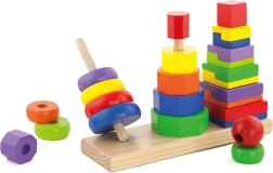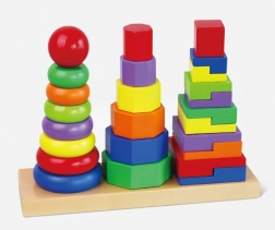 Les formes et couleurs variées des pièces en bois apprennent aux enfants à reconnaître et nommer les formes et les couleurs.