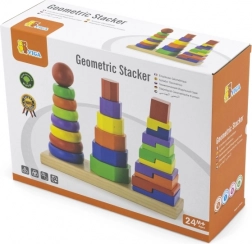 Le puzzle en bois pyramide est un jouet idéal pour les enfants dès 2 ans, qui favorise le développement de la motricité et la reconnaissance des formes grâce aux pièces géométriques colorées.