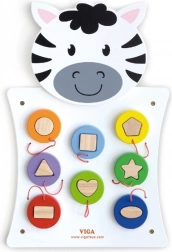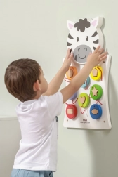 Jeu mural en bois Zebra de VIGA offre aux enfants une forme de jeu amusante et créative, où ils apprennent à reconnaître les formes et les couleurs grâce à un trieur avec des pièces en bois colorées.