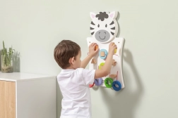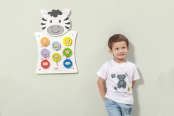 Découvrez la magie du tableau mural en bois Zebra de VIGA, qui développe non seulement la pensée créative et la dextérité, mais aussi la capacité à reconnaître les formes et les couleurs. Ce jeu convient aux jeunes enfants qui développent leurs compétences sensorielles à travers le jeu.