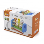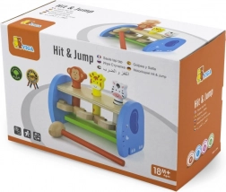 Ce jouet en bois de qualité offre un jeu sûr et coloré avec de mignons animaux. À l’aide du marteau, les enfants tapotent sur le mécanisme qui fait jaillir les animaux – ils perfectionnent ainsi leur prise, la force de leur poigne et la précision du mouvement. La construction solide et les bords lisses garantissent la sécurité lors d’une utilisation quotidienne.