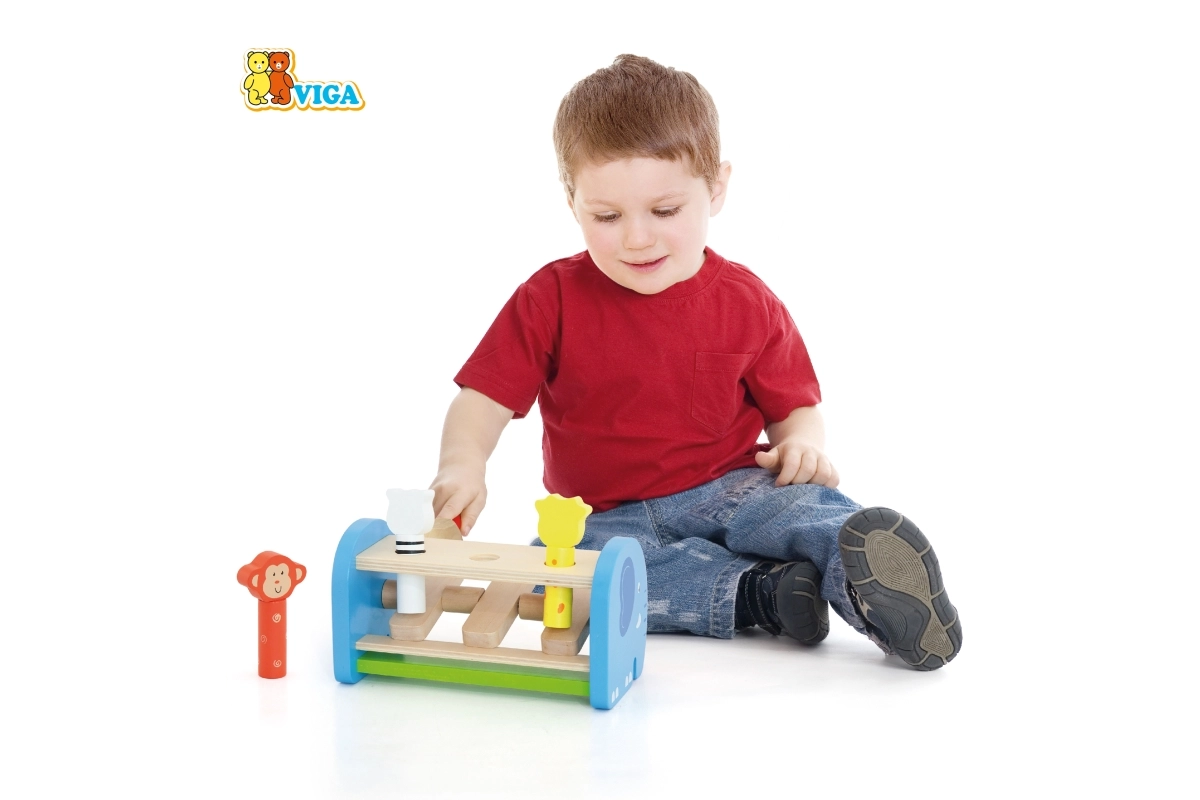 Les coups de marteau développent la préhension, la force et la coordination œil–main, tandis que le principe de cause à effet apprend aux enfants le raisonnement logique.