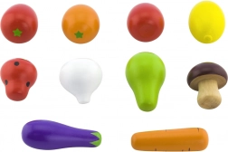 Profitez d'un jeu amusant et créatif avec des fruits et légumes en bois pour enfants ! Idéal pour le développement de la motricité fine et la reconnaissance.