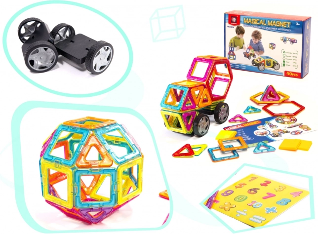 Commencez à construire une nouvelle maison ou une voiture fantastique avec vos enfants avec un des plus grands ensembles de construction, contenant 40 pièces. Les kits de construction magnétiques contiennent tous les éléments nécessaires pour construire diverses structures.
