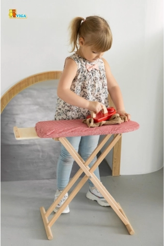 Créez pour les enfants un coin maison plus vrai que nature ! La table à repasser en bois avec fer VIGA apporte un jeu domestique réaliste qui stimule l’imagination, les compétences sociales et la motricité fine. La structure en bois stable, le gain de place et la housse textile au motif attrayant garantissent une longue durée de vie et une utilisation confortable.