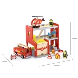 Découvrez une caserne de pompiers en bois ludique avec de nombreux accessoires pour les petits héros dès 3 ans. Le set comprend une voiture de pompiers, un hélicoptère, des figurines de pompiers, une bouche d’incendie et d’autres accessoires qui stimulent l’imagination, le jeu de rôle et la motricité fine. Dimensions de la station env. 35 × 28 × 25,5 cm.