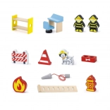 • Coffret complet – voiture de pompiers, hélicoptère, figurines, bouche d’incendie et autres accessoires.