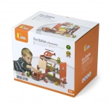 Cette caserne de pompiers en bois, richement détaillée, offre aux enfants un cadre authentique pour des missions de sauvetage. Grâce à la station rouge à plusieurs niveaux, au camion avec échelle et à l’aire d’atterrissage pour hélicoptère, les enfants créent facilement leurs propres histoires tout en exerçant coordination et raisonnement logique.