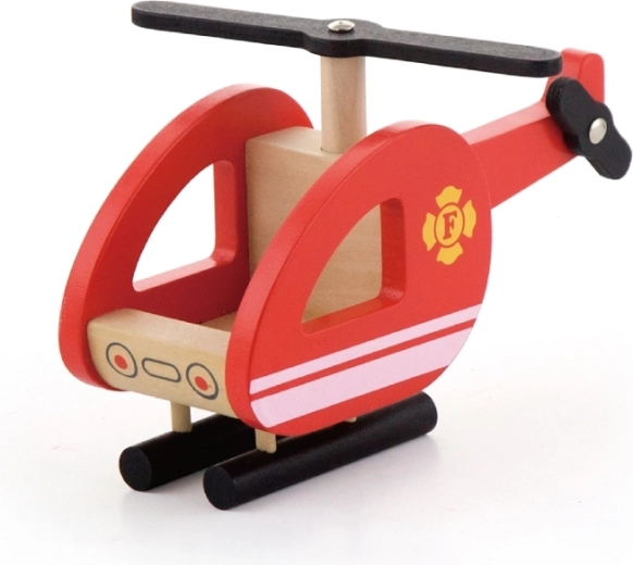 Petit hélicoptère en bois avec rotor tournant et patins stables pour compléter chaque mission de sauvetage vue du ciel.