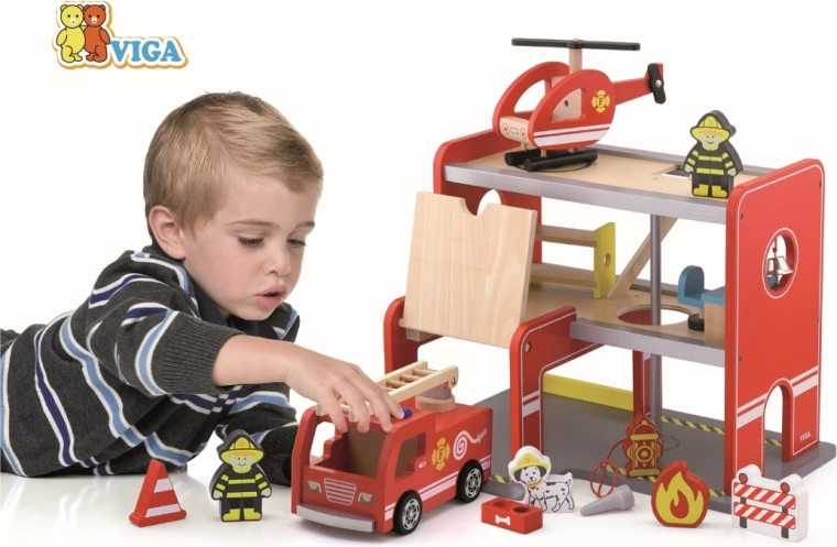 La caserne de pompiers en bois Viga est un ensemble de jeu complet à plusieurs étages qui favorise le jeu de rôle, le développement de la motricité fine et de l’imagination. Les enfants peuvent sortir du garage avec le véhicule, atterrir avec l’hélicoptère sur la plateforme supérieure et glisser par le tube directement vers l’intervention. Les détails colorés et la construction en bois de qualité garantissent un aspect attrayant et une résistance à l’usage quotidien.