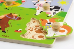 Découvrez un premier puzzle qui apprend aux enfants, de façon ludique, à reconnaître les formes et les animaux de la ferme. La planche en bois de qualité avec illustrations colorées et pièces robustes munies de poignées est idéale pour les petites mains et le jeu quotidien.