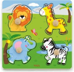 Ce puzzle encastrable en bois de qualité, avec quatre animaux du zoo, offre un jeu sûr et stimulant pour les tout-petits. Grâce aux grandes poignées en bois, les enfants saisissent facilement chaque pièce et apprennent à la placer correctement – l’image sous la pièce les guide vers la réussite et la joie d’achever la tâche.