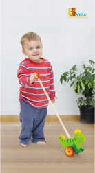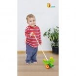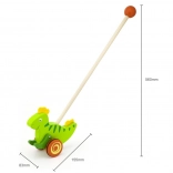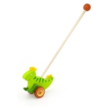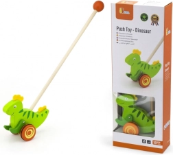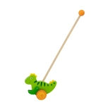 Le jouet pousseur en bois Dinosaure est un grand classique conçu pour les enfants qui commencent à se déplacer. Cet accessoire robuste est équipé de roues avec embouts antidérapants qui protègent le sol et facilitent le mouvement. Le dinosaure vert agite énergiquement les bras lorsqu’on le pousse, captivant et motivant l’enfant à continuer de bouger.