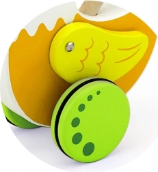 Ce pousseur avec petite poule soutient les enfants dans le développement de leur marche et de leur coordination.
