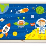 Le puzzle en bois VIGA sur le thème de l’espace apporte aux enfants, dès le plus jeune âge, la joie de la découverte. Les illustrations colorées avec fusée, astronaute et planètes encouragent naturellement la reconnaissance des formes et des couleurs et le développement de la coordination œil–main. Une fois assemblé, le puzzle mesure environ 27,5 × 20 cm, parfait pour la table ou le coin enfants.