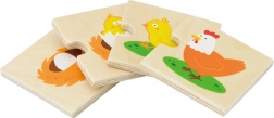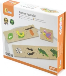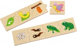 Ce set de puzzles « évolutifs » en bois apprend aux enfants à comprendre les cycles de vie des animaux et des plantes – de la graine ou de l’œuf jusqu’à l’âge adulte. Chaque motif est une séquence de pièces qui s’emboîtent logiquement et aident à entraîner naturellement la motricité fine, la compréhension des relations et la coordination œil–main.