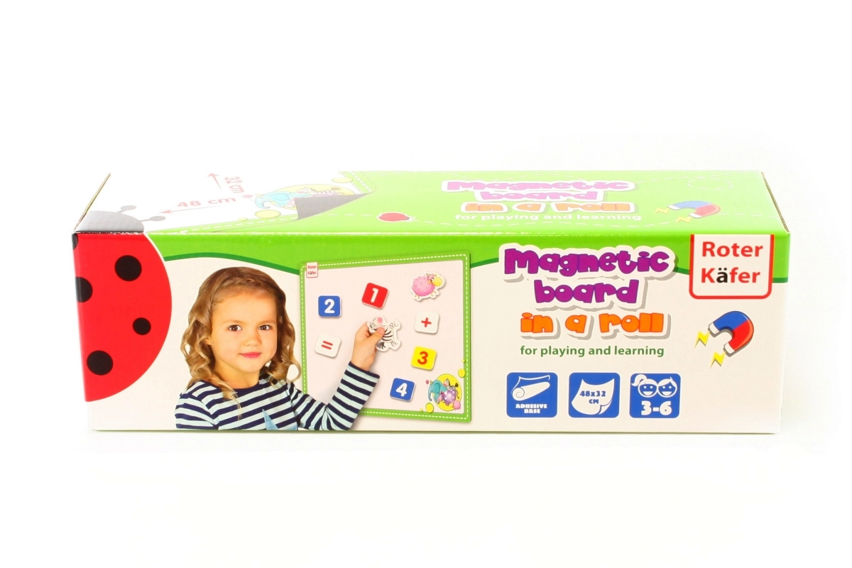 Le tableau se déplace facilement, se roule et se range en un instant. Idéal pour l’apprentissage à la maison, la chambre d’enfant et les voyages. Dimensions du tableau env. 48 × 32 cm, emballage compact env. 33 × 10 cm. Les aimants ne sont pas inclus.