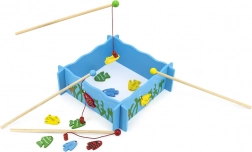 Le coffret comprend un bassin d’environ 35 × 13 × 5 cm, quatre cannes magnétiques pour jouer à plusieurs et 20 poissons numérotés, qui favorisent la numératie précoce et le tri. Grâce aux embouts magnétiques, pêcher les petits poissons est intuitif et amusant.