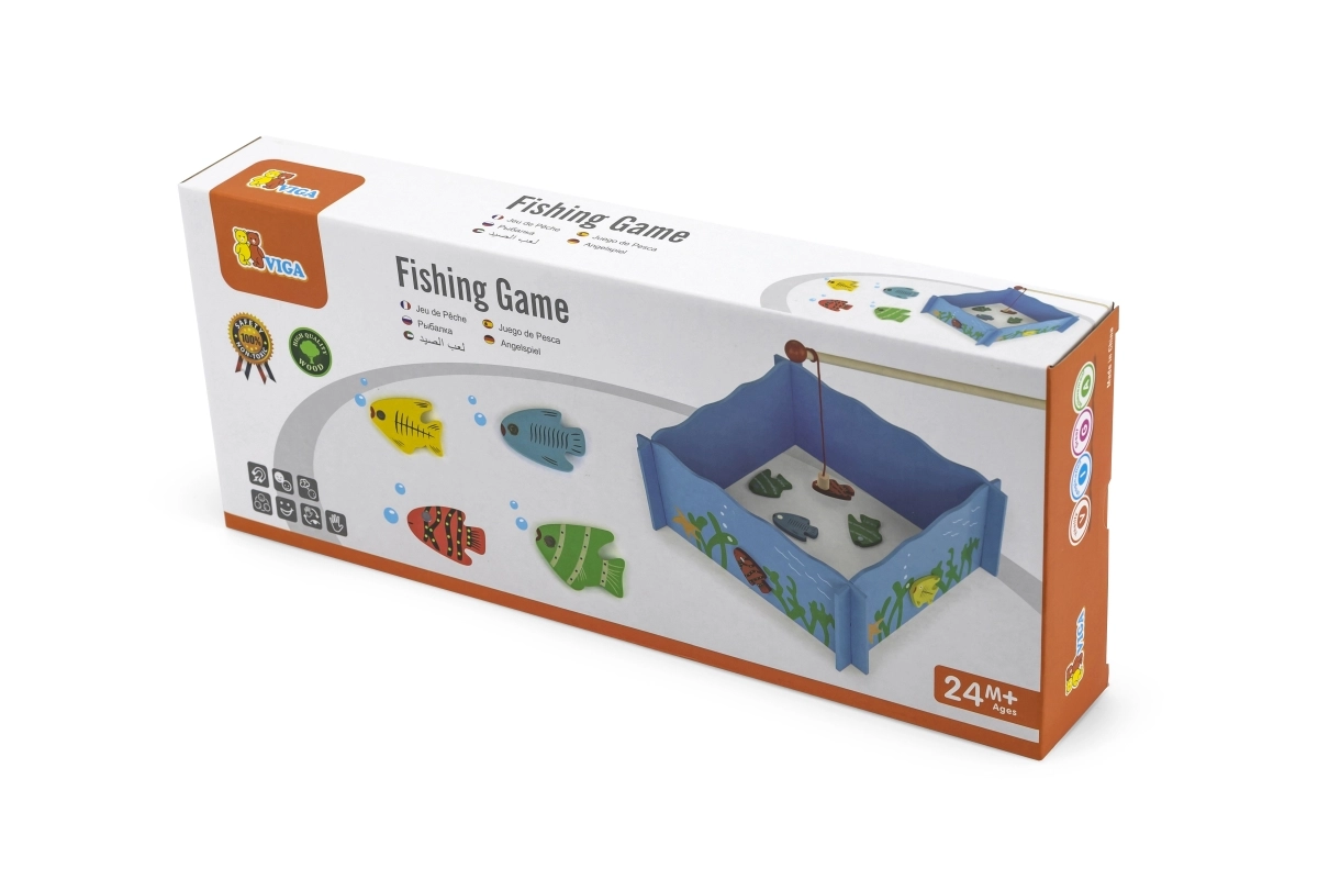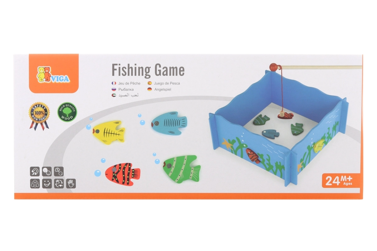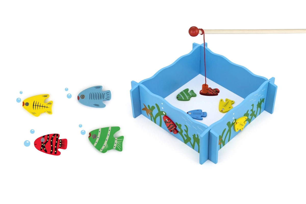 Le jeu de pêche magnétique en bois, ludique et de qualité, développe la motricité fine, la coordination œil-main et la patience des enfants dès 24 mois. Il comprend un bassin de pêche, 4 cannes magnétiques et 20 petits poissons colorés numérotés pour apprendre en s’amusant.