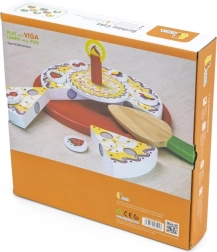 Le gâteau d’anniversaire en bois, présenté sur un plateau de service, est divisé en parts avec décorations et une bougie. Grâce aux bandes auto-agrippantes/aimants (selon la version), les éléments se séparent et se rassemblent facilement. Les enfants exercent la préhension, la précision et le vocabulaire en « soufflant la bougie » et en servant ensemble.