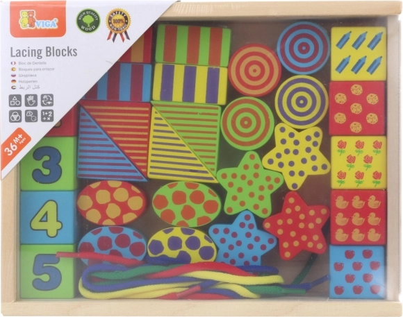 Découvrez un jeu créatif avec l’ensemble d’enfilage en bois VIGA – une boîte remplie de formes colorées à enfiler sur des cordons comme des perles. Favorise la motricité fine, la coordination œil–main et l’apprentissage des couleurs et des formes. Éléments en bois de qualité avec peintures non toxiques et grande taille pour une prise en main sûre.