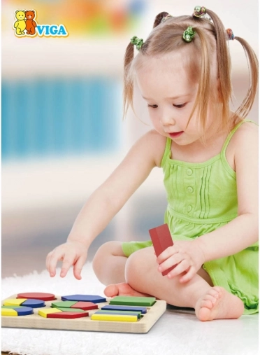 Ce puzzle éducatif en bois VIGA est le jouet idéal pour une première découverte du monde des formes et des couleurs. La planche en bois robuste avec des découpes précises et 18 pièces colorées apprend aux enfants à trier, développe la coordination œil-main et stimule la représentation spatiale.