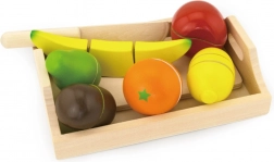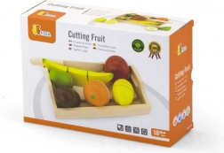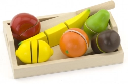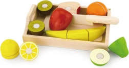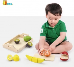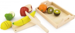 Les fruits et le couteau sont fabriqués en bois naturel, garantissant sécurité et durabilité pendant le jeu.