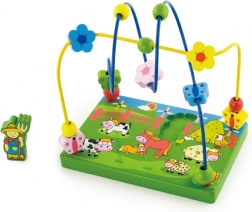 Découvrez un coloré labyrinthe de perles en bois sur le thème de la ferme, qui ravira les enfants grâce au déplacement des perles sur les fils métalliques et au jeu avec la figurine magnétique. La base en bois stable, illustrée de scènes de ferme, stimule l’imagination tout en apprenant aux enfants à se concentrer et à coordonner leurs mouvements.