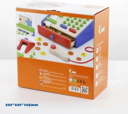 La caisse est fabriquée principalement en bois et complétée par des éléments plastiques résistants. Idéale pour jouer à la marchande à la maison ou à la maternelle, elle développe naturellement la pensée logique, les capacités cognitives et le rapport aux nombres dans l’esprit Montessori.