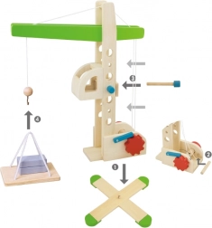 En tournant simplement la molette d’enroulement, les enfants peuvent lever et abaisser la charge. Le mécanisme favorise la coordination œil-main et offre un fonctionnement fluide et sûr.