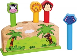 Ce jeu pop-up en bois avec animaux est un premier jouet moteur idéal. Les enfants insèrent les chevilles-animaux dans les trous et, après avoir pressé le ressort, les figurines jaillissent de façon ludique. La base en bois robuste au motif jungle et les animaux amicaux encouragent le jeu répété et développent la patience ainsi que la concentration.