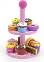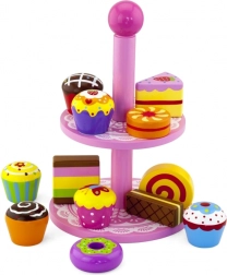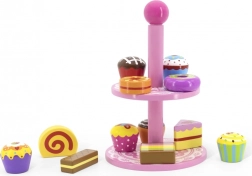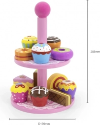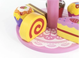 Ce set élégant de desserts en bois sur un présentoir à deux niveaux est idéal pour jouer au café, au goûter ou à la pâtisserie des enfants. Les pièces en bois de qualité, aux couleurs vives, invitent à l’exploration et développent la coordination œil-main.