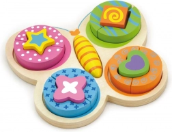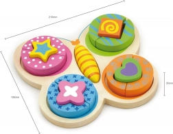 Adorable puzzle en bois en forme de papillon offrant aux enfants dès 2 ans des heures de jeu et d’apprentissage. Grâce aux couleurs vives, aux grandes pièces sûres et aux bords fraisés, les pièces restent parfaitement en place. Le jouet favorise la motricité fine, la coordination œil-main et la créativité.