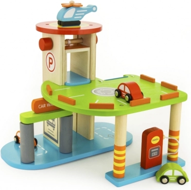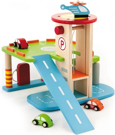 Découvrez un garage en bois ludique avec 3 petites voitures et un hélicoptère, qui stimule l’imagination et la motricité fine. Il comprend une aire d’atterrissage, un ascenseur fonctionnel et des éléments réalistes pour des heures de jeu dès 3 ans.