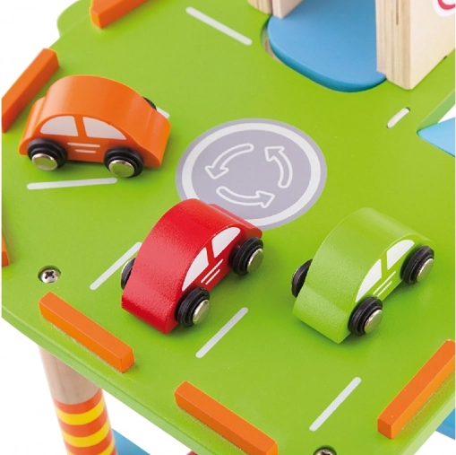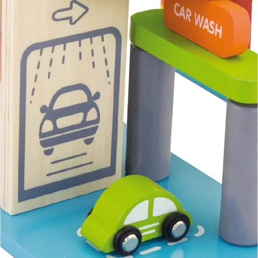 Ce garage en bois de qualité offre plusieurs niveaux de stationnement, une zone d’atterrissage pour hélicoptère et un ascenseur pratique pour déplacer facilement les voitures entre les étages. Grâce à son design bien pensé avec pistes, panneaux et accessoires, les enfants exercent leur coordination et développent leur imagination.