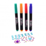 Quatre feutres colorés complétés par des strass autocollants apportent couleur, relief et une brillance éblouissante aux tatouages.
